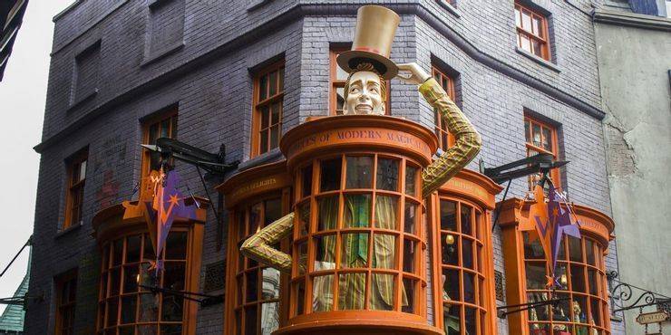 这个商店一般会设置在对角巷的入口附近,这根电影里的位置类似,前面一般还有一个20英尺高的黄鼠狼兄弟。粉丝可以进入并购买侏儒泡芙,自行车多洛雷斯·乌姆里奇,拳击望远镜等等。
